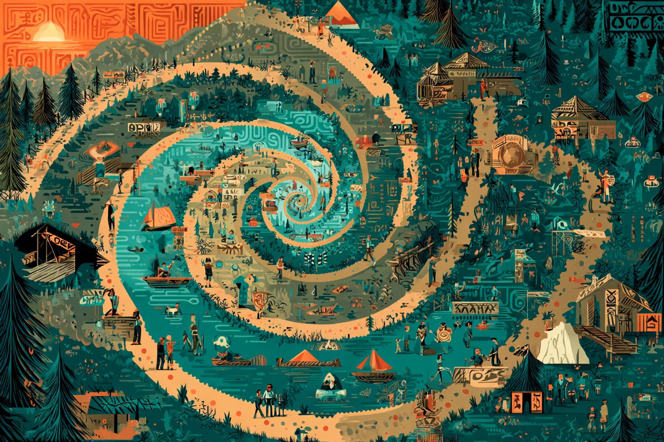 The dawn drum signals game day. Jordan joins forty others at the community center, uncertain what today’s challenge brings. The Play Council announces: “The Mycelium Web”—teams must build underground communication networks using only natural materials while playing forest organisms protecting against drought. By noon, Jordan’s team has constructed an elaborate root system while learning soil chemistry, network theory, and collaboration strategies—reflecting the Haida principle of Sḵ’aadG̱a G̱ud ad is (learning together). Learning feels less like education and more like being intensely, joyfully alive.